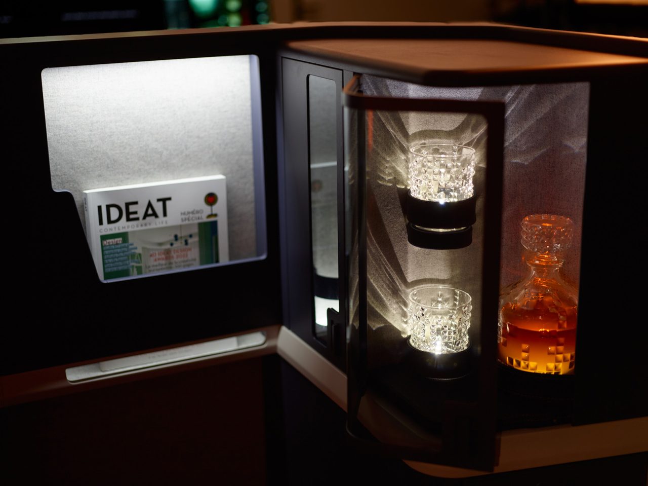 OPERA® SA est également disponible en configuration « Business Class + » pour le premier rang. Cette option exclusive offre une personnalisation étendue, permettant l’intégration d’un mini-bar ou d’une porte d’intimité totale. Elle offre également aux passagers davantage d’espace, incluant des rangements supplémentaires et un fauteuil d’appoint pour une expérience de voyage conviviale.